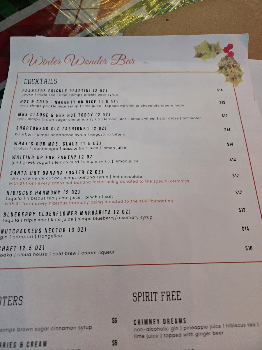 “ Had a fun time Saturday night . The place had awesome Christmas decorations and fun drink options. We sat at the bar and had great service. We had the after 9 snack/food menu items. My wife raved about the Turkey buns and said it was Christmas in a bun. I had the pizza and it had a great crust and a good amount of sauce and meats. ”